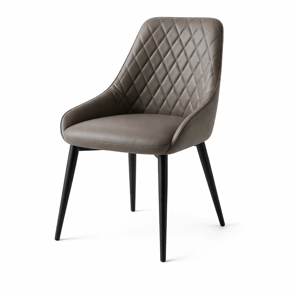 Silla de comedor de poliuretano marrón con patas de metal negro