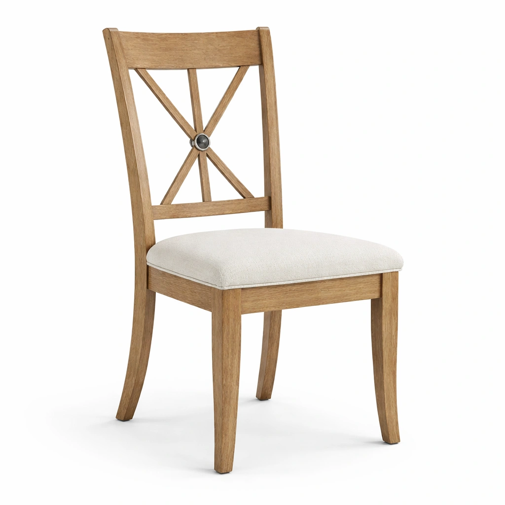 Silla de comedor de madera de roble con asiento tapizado en poliéster beige