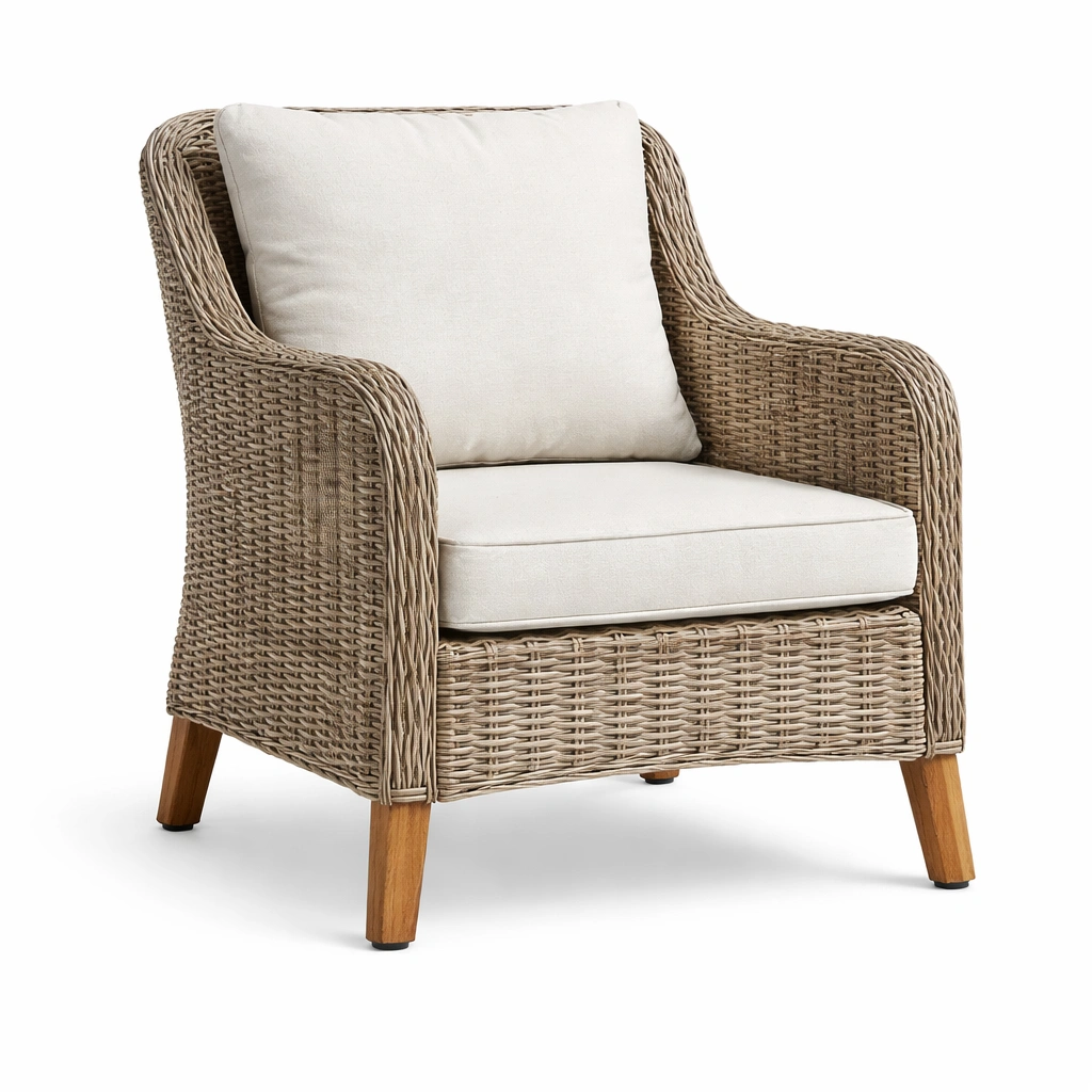 Sillón de madera y mimbre sintético beige 65x70x80cm