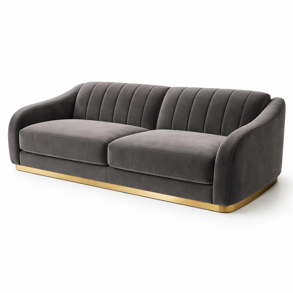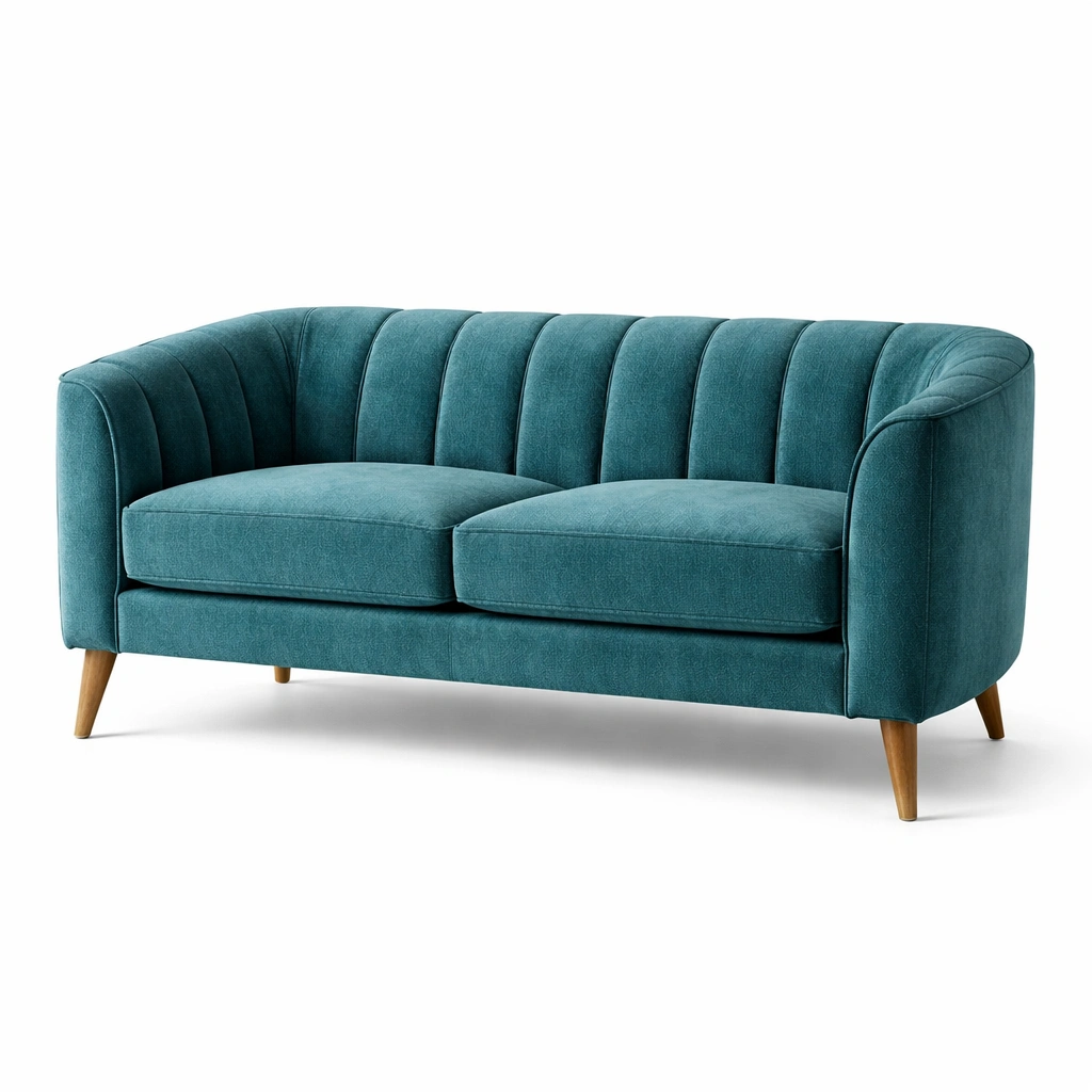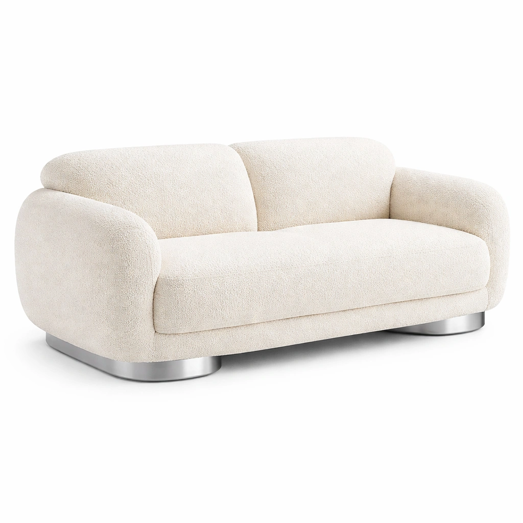 Sofá de 2 plazas de tela bouclé beige con base de acero