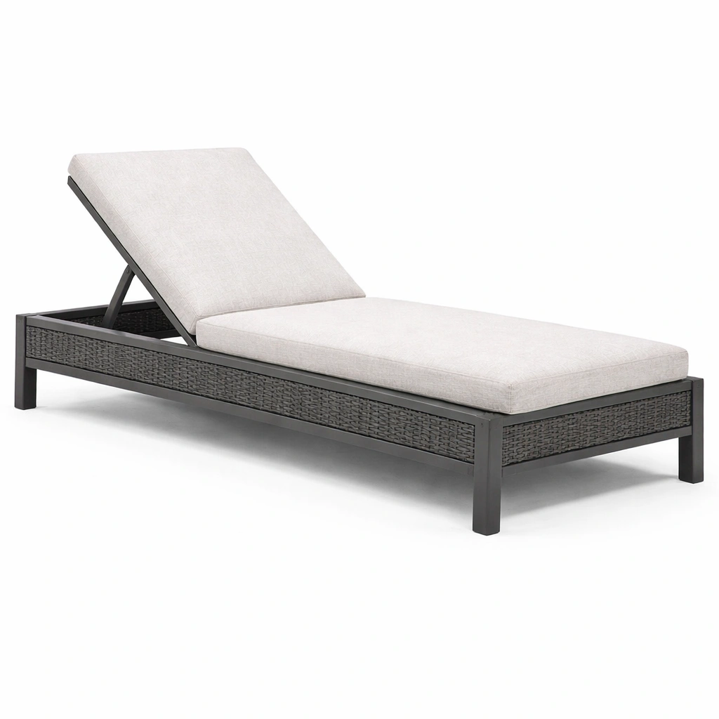 Tumbona de aluminio con cojín en poliéster y ratán sintético