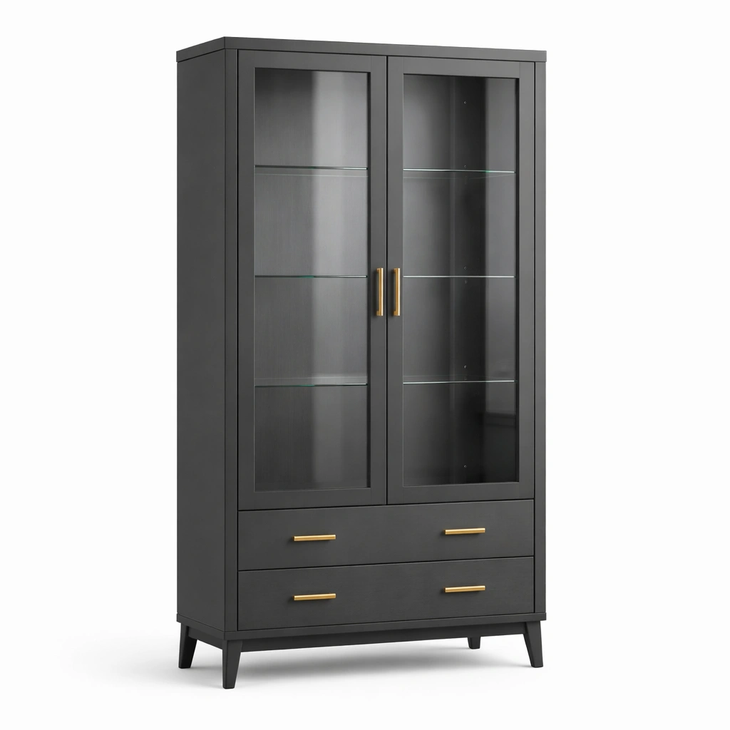 Vitrina de madera con puertas de vidrio templado y cajones negra 200x90x40cm